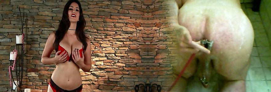 Cool dark haired big napile cock Leone shows off her red lace underpants