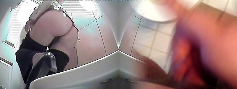 Honey with fresh culo urinated on restroom cam and immobile g-string