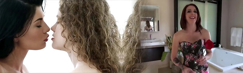 Romantic Evening with Stepsisters, Lesbian Smooching, Blowjob, Cum Kissing Girls - Home Video Total