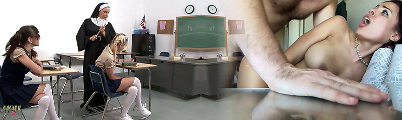 Crossing the nun will land you detention and some all girl pussy licking activity