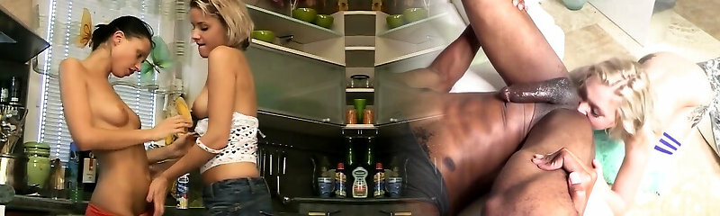 Teenie lesbians dildo twats in kitchen