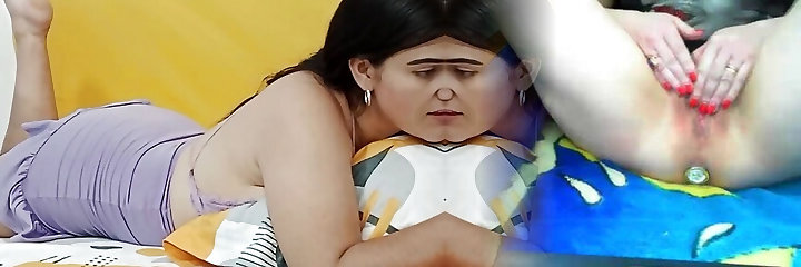 Drilling her lesbo anal canal with a rotating dildo that vibes the donk as well