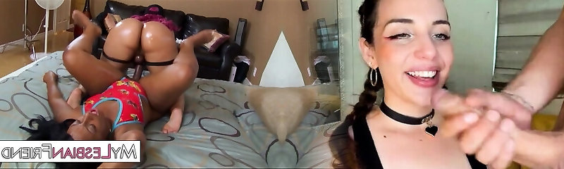 ebony booty lesbian strapon boink with oily booty and a huge strapon dildo