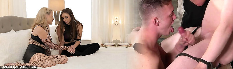 Shy Dark Haired Gets a Lesson Of Blowjob And Hot Girl/girl Sex From Her Slutty Slim Blonde Friend