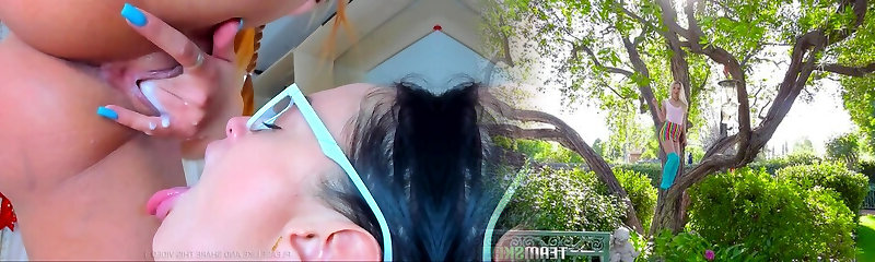 Trio sexy Russian lesbians anal masturbation and pussy munching near swimming pool