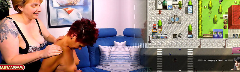 This hot young babe seduces a naughty fur covered mature lesbian