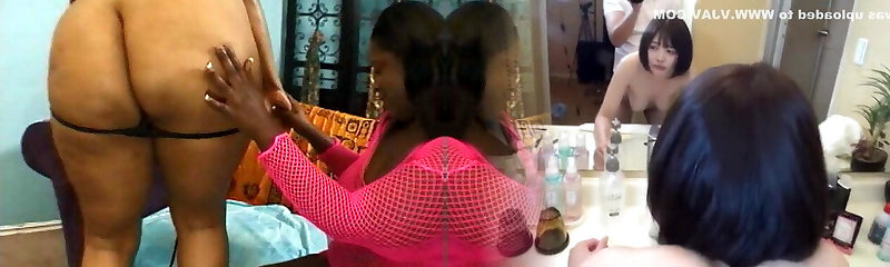 Gigantic black lesbian girls play with a vibrator on their clits