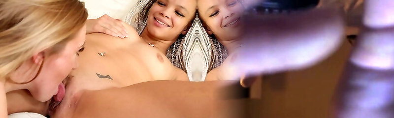 天生的金发女郎和黑色的胖乎乎的若虫都有所有的女孩屁股-他妈的指法和舔喜悦