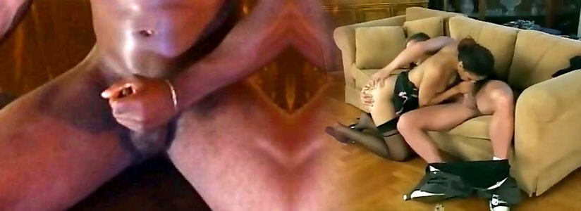 Super-bitch with lengthy black hair fellates firm pipe on couch