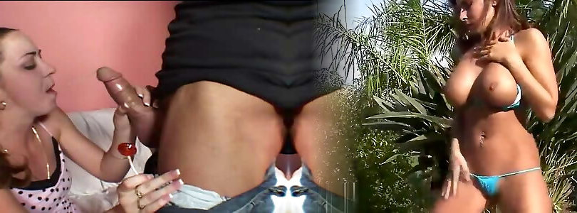 Black haired lingerie girl with puffy boobs takes 2 ample lollipops