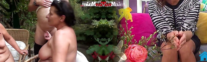 Two MILFs bring home 2 nubiles for a hot lesbian foursome