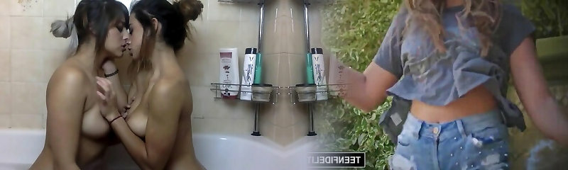Bathtub time with lusty teen ladies means kissing and slit licking