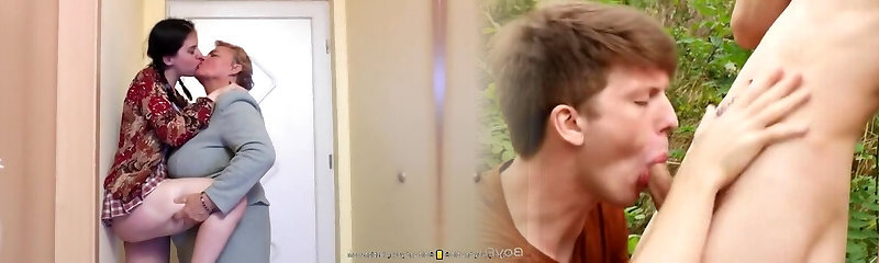 Big titted mature seduced a frisky, college girl dyke and invited her to the bedroom, to make love