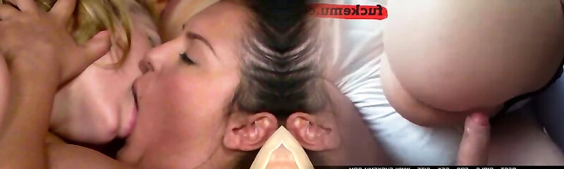 Big tit blond milf has them sucked by teenage brunette lesbian