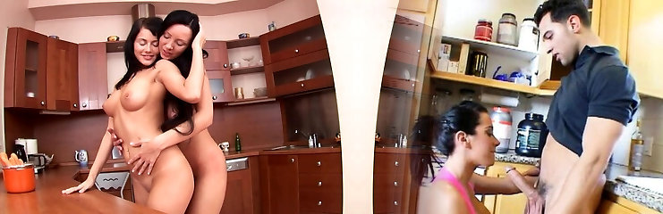 Kitchen lezzie sex on the counter with Samy Saint & Natalie Super-hot