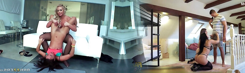 Kinky lesbo threesome with hot ass brunette Serena Blair