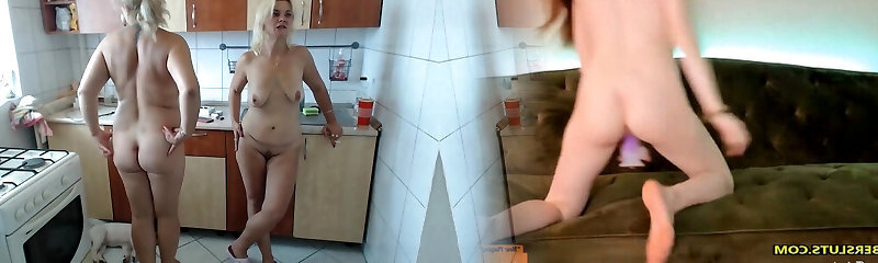 2 slutty lesbian milf seducing in the kitchen