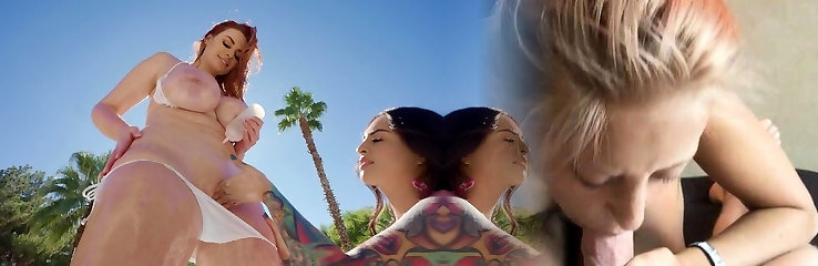 Hardcore Threesome with 2 Hot Stunners Outdoors at the Pool