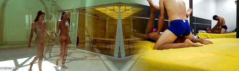 Hot Spanish and Russian nubile in the pool naked