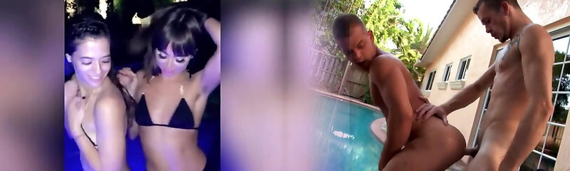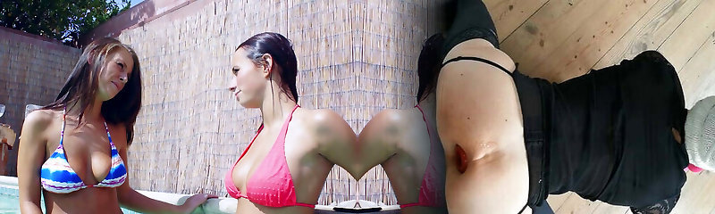 Teens Kelly Skyline and Natasha nice gobble fuckbox by the pool