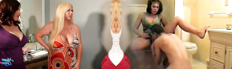 Redhead Abigaiil Morris is having some crazy fun in the sun shaking her big boobies and ass by the pool, curvy brunette Sammy Tor