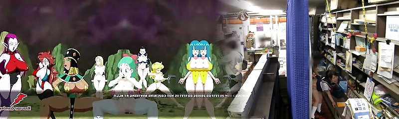 Hefty tits lesbian tries to steal a dildo from the sex store